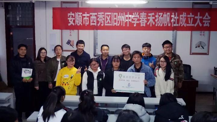 2017年11月28日,上海扬帆高尔夫球队(SGCU)的爱心人士代表羡磊先生、方佳女士、赵青杨女士一行3人,在上海春禾青少年发展中心陆逊老师陪同下,来到贵州省安顺市旧州中学,为新加入“春禾启梦计划”的安顺市旧州中学进行捐赠授牌,并参与学校“春禾扬帆社”的成立大会。